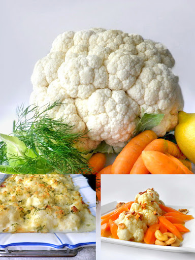 Грипното време напомни за необходимостта от зареждане на организма с витамини, минерали и други полезни неща. Тази седмица кухнята ни бе превзета от една глава карфиол – огромна, свежа, с много бели и крехки цветчета. Оползотворих я цялата, но не в туршия, а и понеже постоянно не успявам с времето, обединих предложенията в обща публикация.